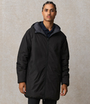 Recycled polyester down padding.Recycled nylon taffeta lining.Waterproof and breathable membrane.Reversable, quilted inner side.Comfortable fit.Grown on hood.Full length reversible two way zip.Inner zip pockets with flaps.Two front zip pockets.Elasticated cuffs and hem.Unbranded size label at neckline.Access for decoration.