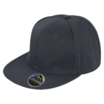 Six panel, Stiffened front panels, Flat peak with 6 stitch lines, Retro style, Snapback adjuster, TearAway label, Collectable with peak sticker, Result printed up stand
