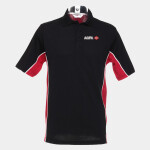 65% polyester/35% cotton. Contrast taped neck and side vents. Three button placket with contrast piping and buttons. Contrast piping and panels on sleeves. Contrast side panels. Twin needle stitching.
