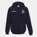 Drop shoulder style. Soft cotton faced fabric. Double fabric hood with self colour drawcord. Front pouch pocket with small hidden opening for ear phone cord feed. Ribbed cuffs and hem. Twin needle stitching.